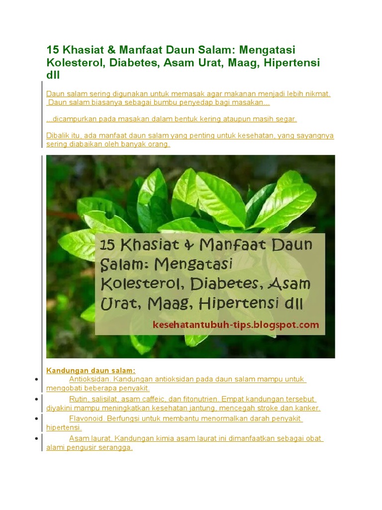 Manfaat daun salam sangat berkhasiat untuk menyembuhkan penyakit sehingga kesehatan tubuh anda akan lebih terjaga dari gangguan penyakit.