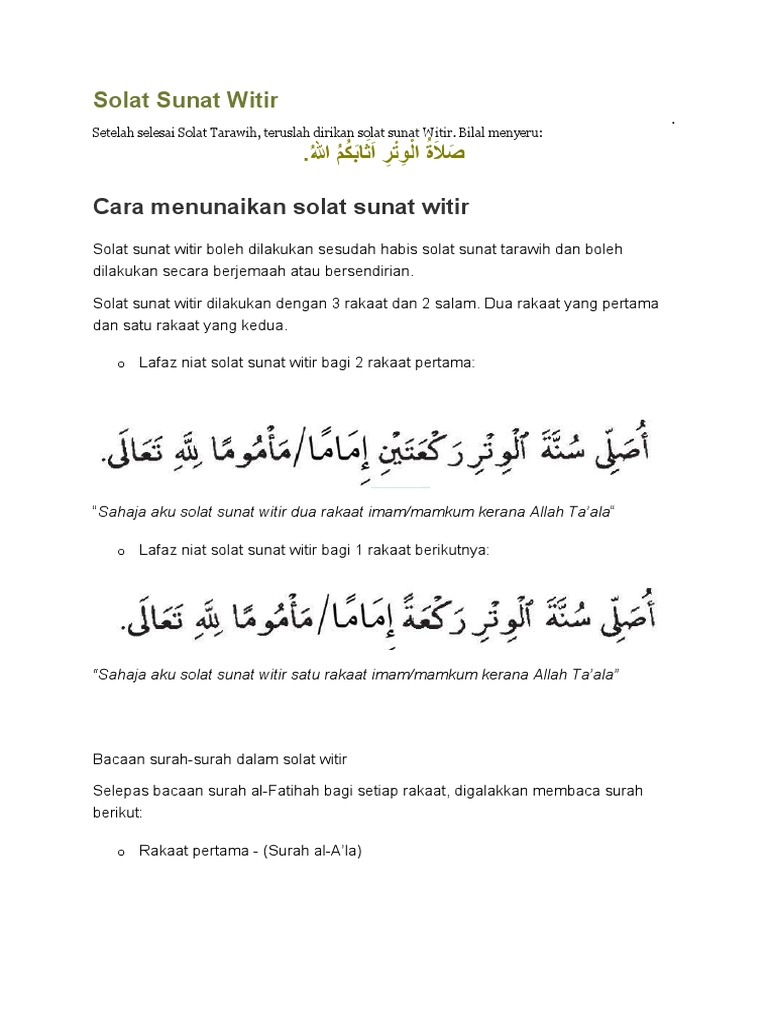 Related : Niat Solat Sunat Witir - Panduan Solat Tarawih Ringkas Beserta Zikir Doa Pdf / Ushallii sunnatam minal witri rak'atal lillaahhi ta'aalaa..