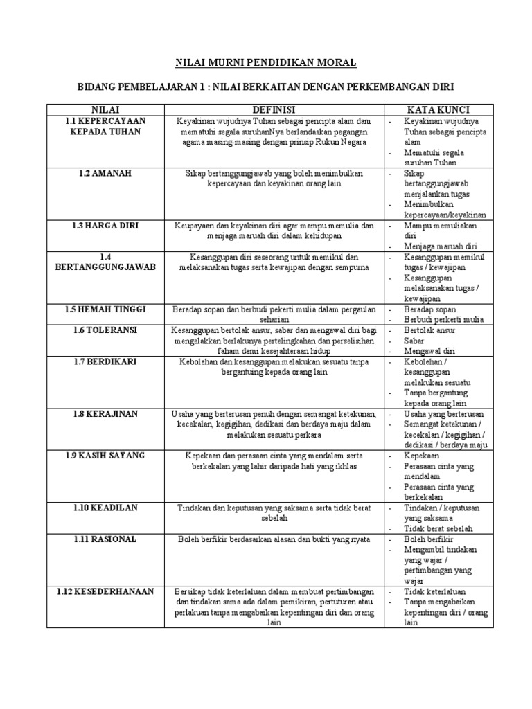 18 nilai universal pendidikan moral kssm. Para pelajar digalak memuat turun, memahami dan menghafalkan semua kata kunci di dalam setiap penerangan nilai, supaya dapat mencapai keputusan yang cemerlang dalam peperiksaan. 18 nilai pendidikan moral nilai nilai moral ini digunakan oleh pelajar pelajar dari tingkatan 1 hingga 4. Karena pendidikan moral hanya bisa dilakukan melalui agama dan pendidikan. Nilai moral menjadi salah satu bentuk pendidikan karakter yang terbentuk pada lingkungan dan pendidikan sehingga hal ini mencerminkan orang tua di dalam keluarga memiliki peran sebagai pendidik. Hijrah membawa rahmat sirah tahun 5 membuka kotak. The four 'nilai murni' above are grouped under the 'hak asasi' (human rights) section of the syllabus. Nilai murni pendidikan moral bidang pembelajaran 1 : Senarai nama guru yang menyediakan soalan ujian/peperiksaan. Oleh itu, guru perlu menggunakan pendekatan lain yang memberi. Today we decided to get our talents to relive that pain. * walaupun bidang pembelajaran dan nilai itu sama. Savesave pendidikan moral 36 nilai murni for later.